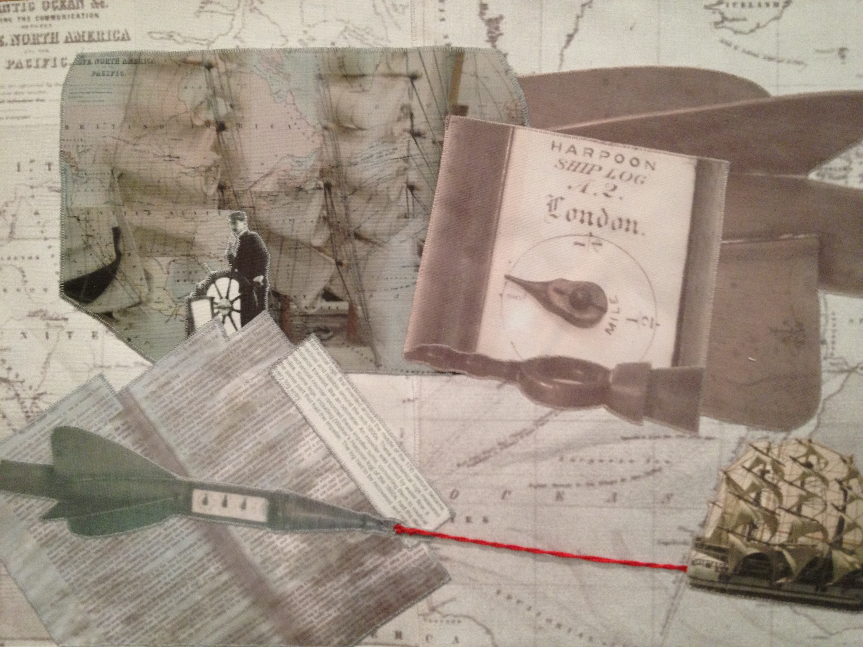 ‘Harpoon Ship Log’, 2012.H42cmx57cm. Collaged, machine stitched, ink-jet print on canvas. ← Previous Next → Like Loading...