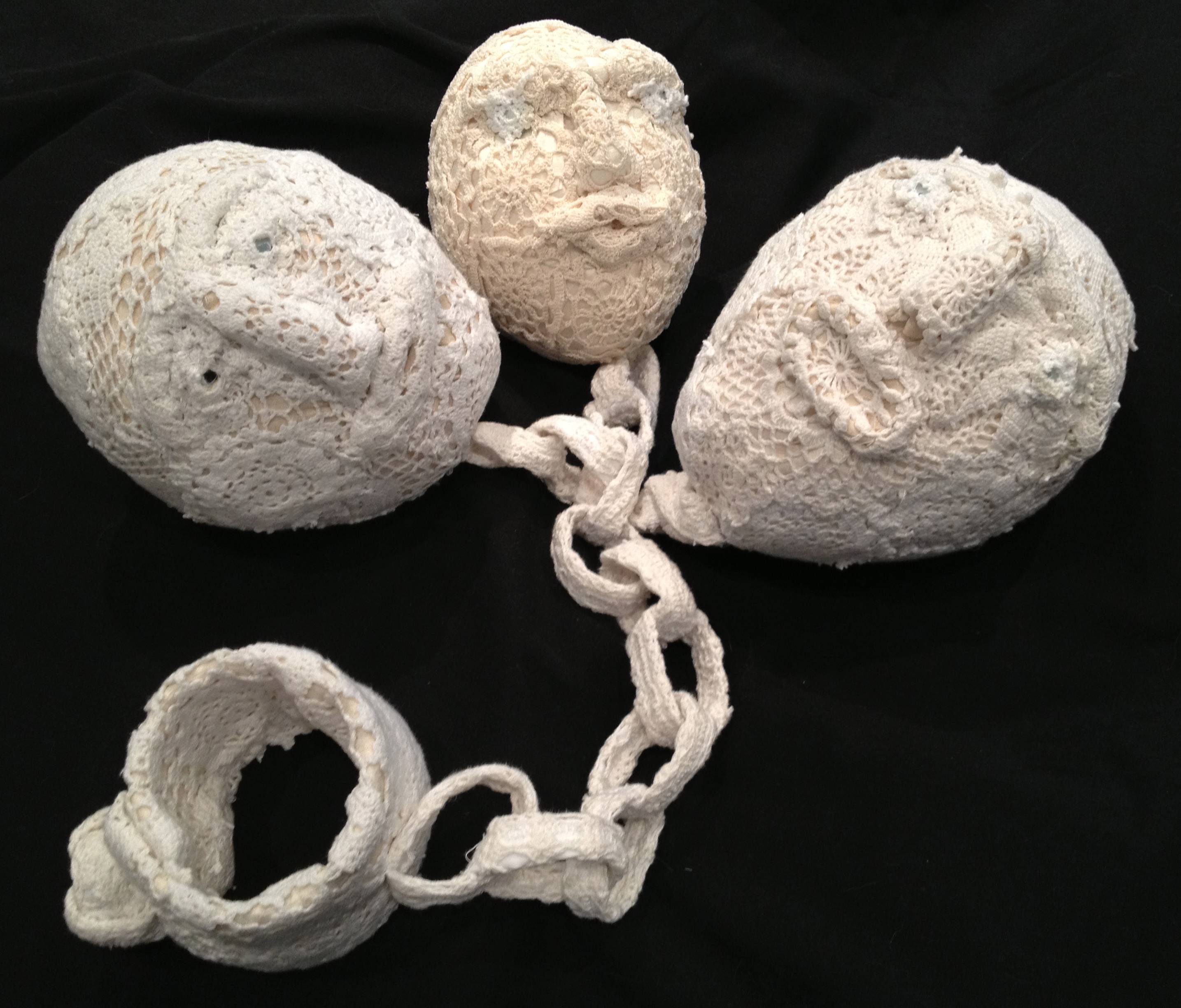 ‘Ancestral Chain’,2013,H16xW50xD60cms.Plaster,acrylic sheet,recycled fabrics,recycled lace doilies,mirrors,machine and handstitched. ← Previous Next → ‘Ancestral Chain’, 2013 Like Loading...