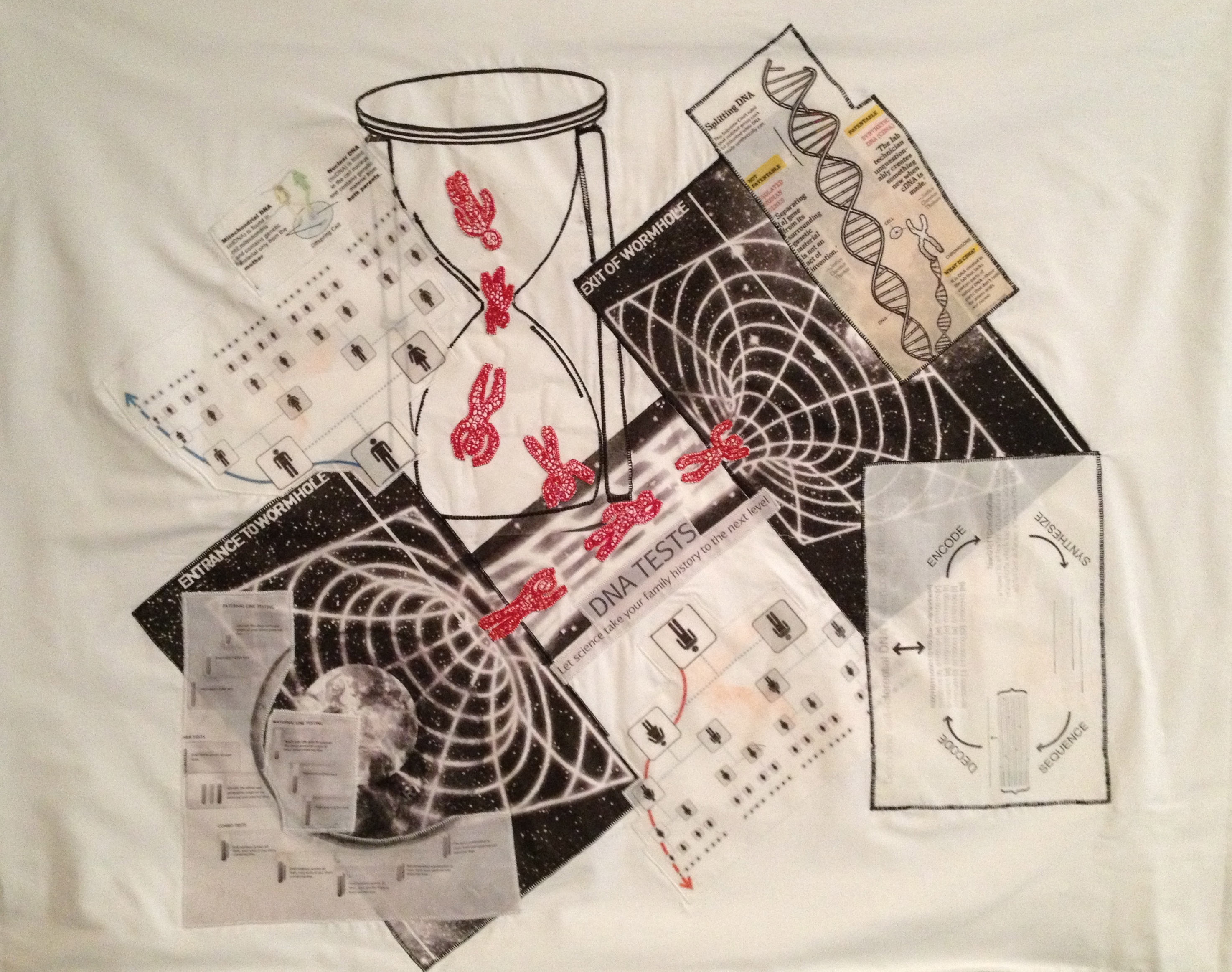 ‘Time Travelling DNA’,2013,H60xW74cms. Freemachine embroidery,inkjet print on cotton,collage,applique,machine stitched. ← Previous Next → ‘Time Travelling DNA’, 2013 Like Loading...