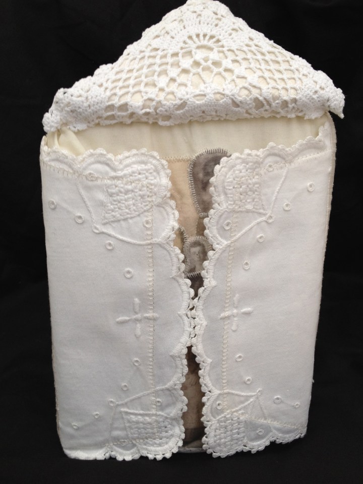 ‘Ancestral Shrine’ I, 2011.Recycled embroidery, lace doily, fabric, inkjet print on cotton, appliqué, hand and machine stitched, foam block. ← Previous Next → ‘Ancestral Shrine’ I, 2011. Like Loading...