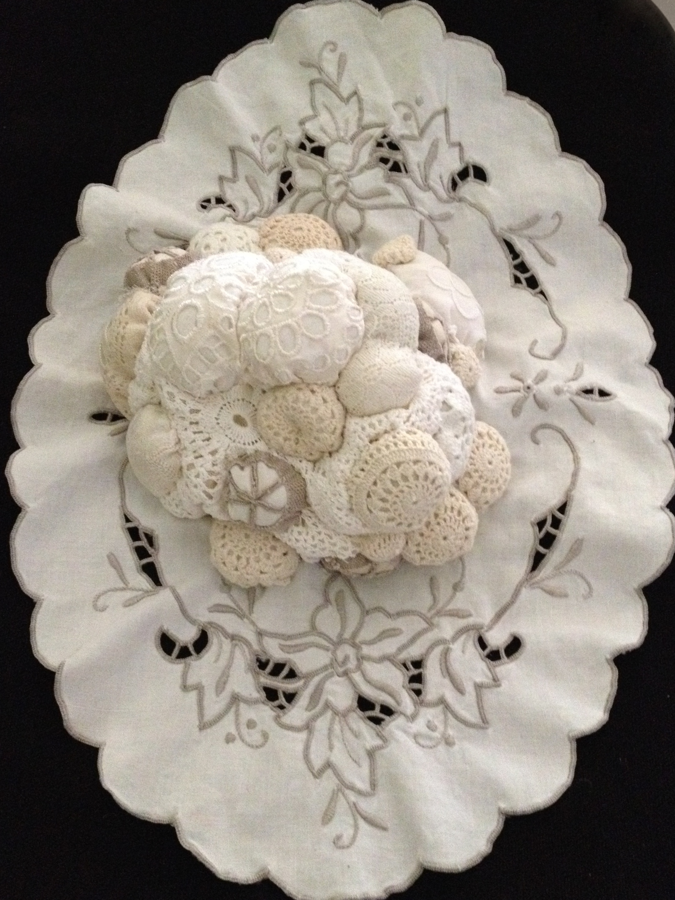 ‘Mutations ll’, 2014. Recycled embroidery, lace and doyleys, polyfibre fill, hand stitched. ← Previous Next → ‘Mutations II’, 2014. Like Loading...